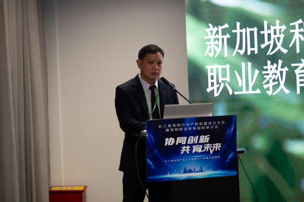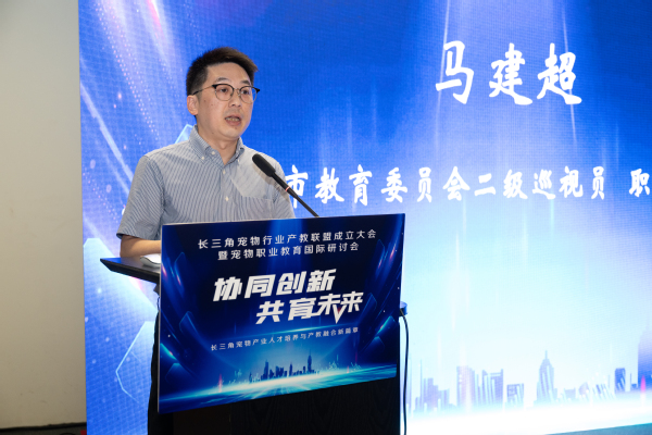 马建超在致辞中表达了对联盟成立的热烈祝贺,指出成立长三角宠物行业产教联盟,不仅是对长三角一体化发展战略的积极响应,更是推动宠物产业与职业教育深度融合、实现高质量发展的关键举措。并提出了三点期望:一是强化示范引领,构建长效稳定的产学研用协同机制;二是深化校企合作,创新人才培养模式;三是汇聚各方力量,促进职业教育高质量创新发展。