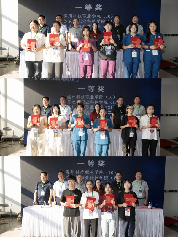 在比赛过程中,参赛选手们展现了极高的热情和专业素养,他们尽其所能地展示了扎实的技能和深厚的理论知识,并在实战中提升了对动物临床处理的应变能力和综合素质。经过激烈的竞争,我院动物科学技术系组成的2支队伍、江苏农牧科技职业学院、湖北三峡职业技术学院4支代表队荣获特等奖,8支队伍荣获一等奖,12支队伍获得二等奖,24名教师获优秀指导教师称号。