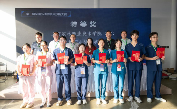 首届小动物临床技能大赛的成功举办,不仅是对学生专业技能的一次全面检阅,更是对工作室教学成果的生动展现。在比赛中,学生们依托动物诊疗模型,进行了术前静脉通道建立及输液、肌肉注射、气管插管、导尿、手术基本操作等技能操作,充分展示了学生的专业素养与实战能力。工作室学员作为指导老师,凭借深厚的专业功底与丰富的教学经验,为学生提供了精准的指导与帮助,助力他们在比赛中取得优异成绩,最终上海农林职业技术学院两支队伍均获特等奖,上海科技管理学校两支队伍获二等奖。