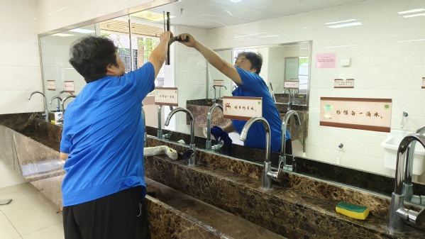 干净整洁的环境,是做好新学期工作的重要保障。保洁员们加班加点对学生公寓和公共区域进行了彻底地打扫、消杀,做到不留死角、不留盲区。专业的维保人员对直饮水机、洗衣机进行了彻底清洗。齐心守护学生健康。