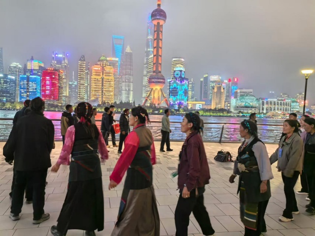 值得一提的是,在外滩,团组成员们自发用锅庄舞表达对于本次行程的欢愉与感激,引发行人驻足观看。在上海的标志性景点展示藏族同胞的民族舞蹈,充分表达藏族人民热爱生活、热爱劳动、热情豪迈的民族特性。