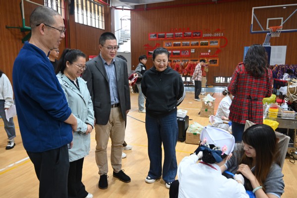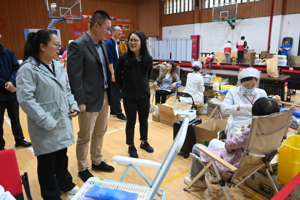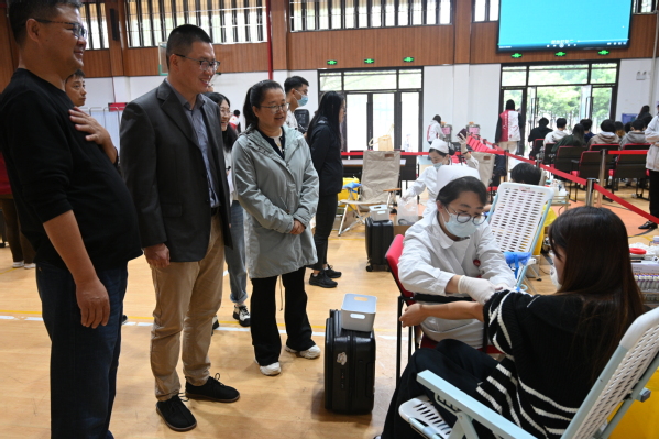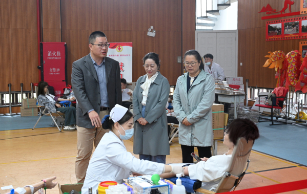 献血期间,院长陈立婧,党委副书记、副院长邵阳,工会主席高功辉等一行来到现场亲切慰问献血师生,对他们的无私奉献表示高度赞扬和衷心感谢。同时叮嘱他们注意休息、合理补充营养。相关部门及各系老师也在现场进行各项流程的组织协调,确保献血工作有条不紊地进行。