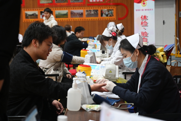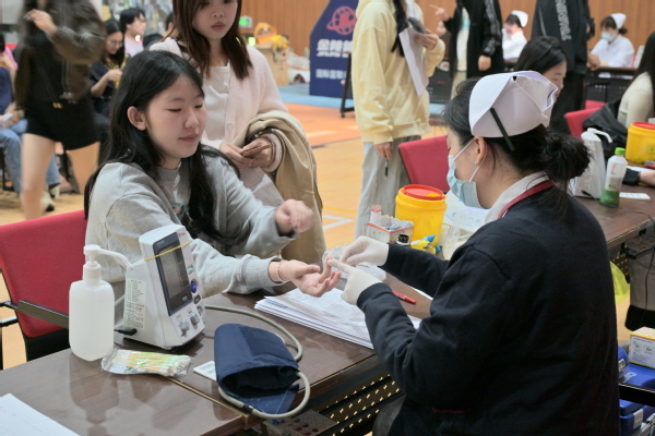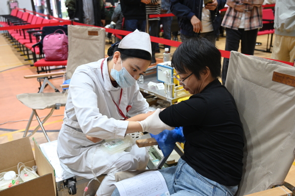 献血活动当日,现场秩序井然,献血师生精神饱满。场内设置了休息区、体检区、献血区、休息区、领证区等区域。上午8点30分,师生们在现场工作人员和志愿者的引导下,按照要求认真填写“献血登记表”,有序进行健康状况检查、测量血压、血液化验等前期工作。随后,体检合格的师生们由志愿者细心带领至献血区进行献血。师生们挽起衣袖,献上热血,彰显着上农人的责任担当。