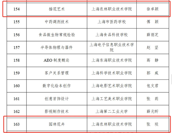 《插花艺术》课程2015年入选上海市精品课程,2020年获批上海市级在线开放课程,2022年获批农业农村部首届涉农职业院校服务乡村振兴“名课名师”。《插花艺术》课程围绕都市现代农业区域产业特征,根据学院以农匠之心育人、培养都市现代农业高素质技术技能人才的定位,结合国赛和世赛花艺赛项及插花花艺师职业岗位要求,打造插花艺术课程为园艺技术专业五年一贯制专业核心课程,为景观园艺、植物装饰等课程起重要支撑作用。