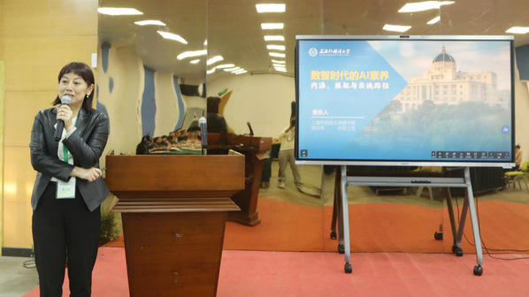 联席会分为专题研讨、交接会旗和馆长研讨三个部分。专题研讨和交接会旗环节由华东政法大学图书馆馆长朱俊主持。上海外国语大学图书馆馆长蔡迎春作专题报告,就数智时代的AI素养内涵、框架与实施路径进行了阐释。超星集团上海研究院院长宋志森作专题报告,对图书馆专有智能体——AI馆员的实践与探索作了深入浅出地讲解。