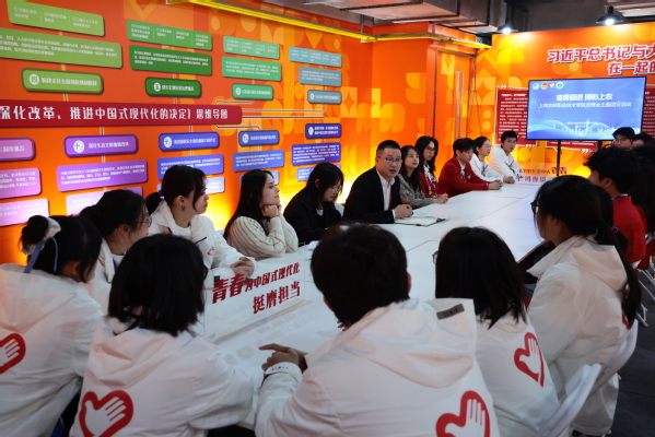 邵阳一行还来到国家会展中心中国馆及“志愿者之家”学习园地,与“小叶子”代表一同参加“奋勇前进 博彩上农”沉浸式主题团日活动。活动中,邵阳寄语同学们要在志愿服务中厚植爱国情怀、增长个人见识、增强综合素质,深刻认识到进博会对上海及中国的重要意义,用青春实践,在进博服务中赓续“上农青年志愿故事”。