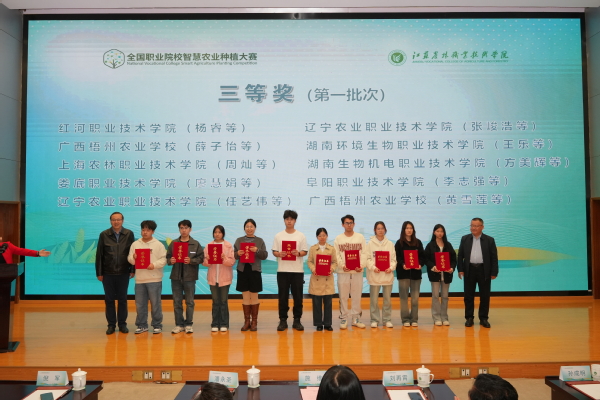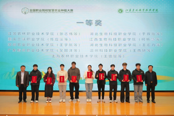 11月10日,在江苏农林职业技术学院举办的2024年全国职业院校智慧农业种植大赛总决赛中,智工系两支代表队获得全国一等奖1项、三等奖1项。本次比赛从6月校赛选拔,8月全国初赛入围,11月全国决赛,共历时5个月,来自设施农业与装备的6名同学组成的两支队伍,从初赛的96支队伍中脱颖而出,分别以第8名和第36名的成绩成功闯入决赛,又在46支决赛参赛队伍脱颖而出,王骆骏、瞿乐、江舟团队获全国一等奖,周灿、张文杰、阙明申团队获全国三等奖,李珈慧、任杰获优秀指导教师,学院获优秀组织奖。