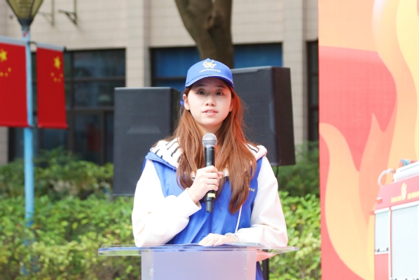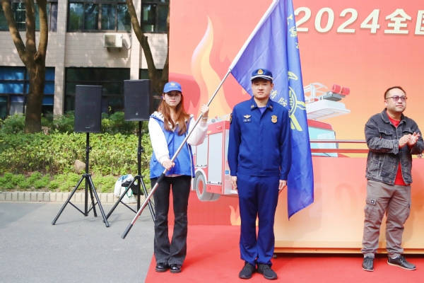 学院消防志愿者表态发言,号召同学们自觉遵守消防安全各项规章制度。岳阳消防救援站陈明警官为学院消防志愿者队伍授旗。