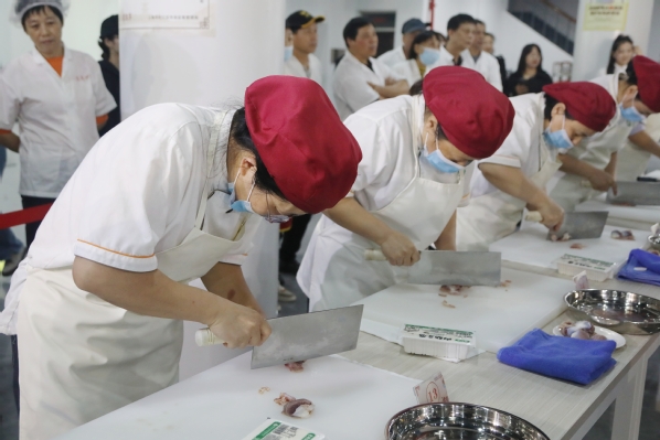刀工较量比赛同样精彩绝伦。选手们在规定时间内完成了整块豆腐切丝和鸡胗切割的挑战,第二学生餐厅陈秀华获得一等奖。他们化平凡为神奇,将普通的食材切割得粗细均匀、形如发丝;鸡胗每一片都切割均匀,深浅一致。这场刀工比赛不仅展现了选手们的精湛技艺,更体现了他们对厨艺的极致追求。