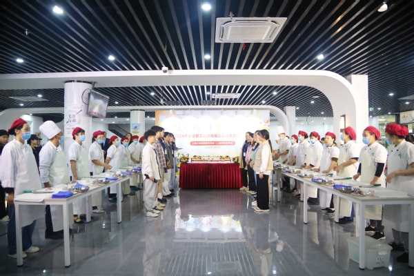 点心制作环节成为了整场活动的甜蜜亮点。在白案比赛中,教工餐厅陈小梅凭借其出色的作品脱颖而出,荣获一等奖。该作品不仅满足了在场师生的味蕾,更以其精美的外观和高超的技艺赢得了阵阵掌声,为大赛增添了别样的色彩。