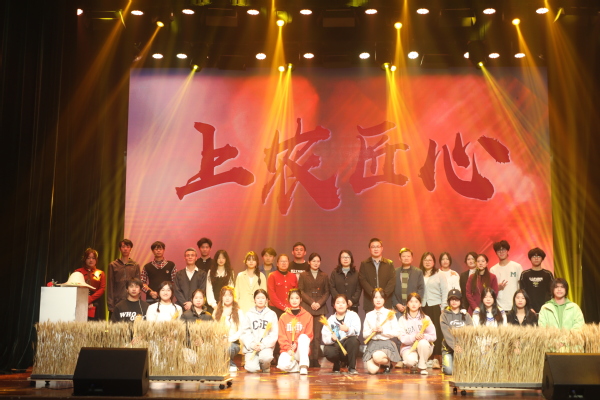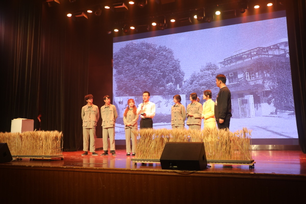 《上农匠心》由学院师生自编、自导、自演的原创话剧。该话剧从选题、编写剧本到遴选演员、组织排演及最终展示,历时7个月,于2024年4月26日首次展演。之后分别于2024年11月12日、14日在松江区九里亭街道社区文化活动中心和学院大礼堂上演,获得当地居民和同学们的一致好评。近期又复排建组,在学院党委的大力支持及指导下继续打磨剧本,将富有松江特色的农业元素融入。