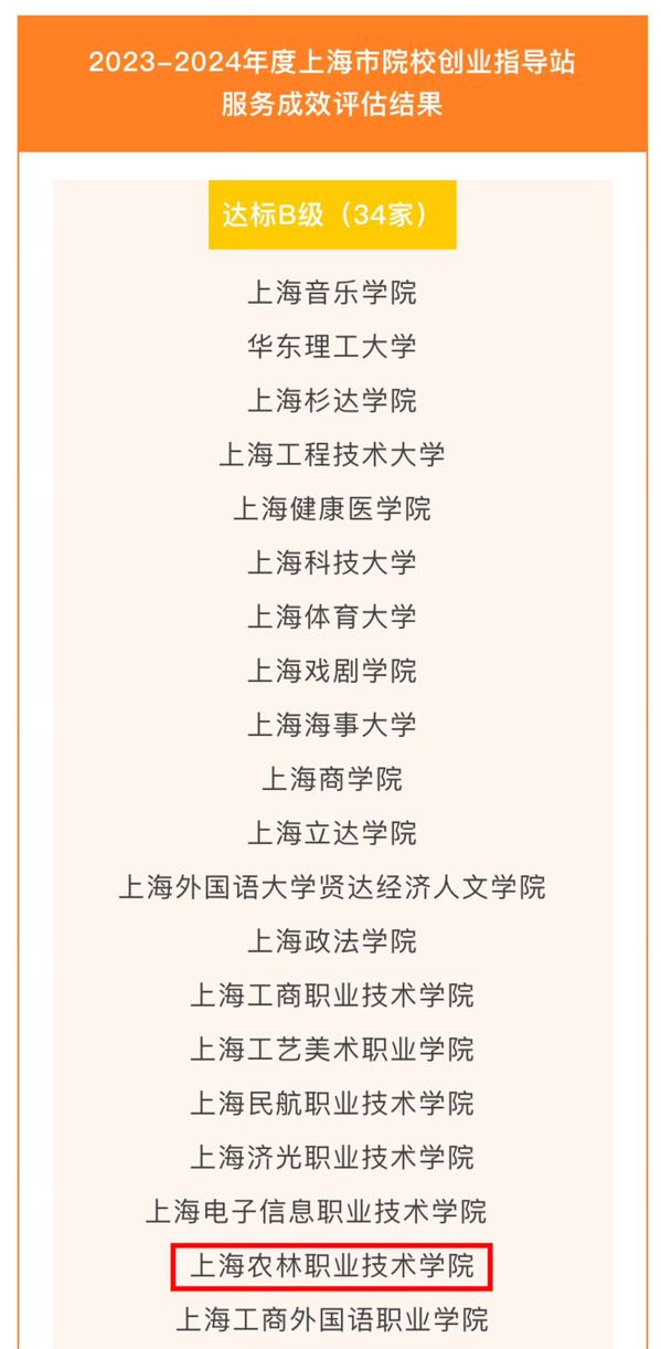 近日,上海市就业促进中心和上海市学生事务中心公布了2023-2024年度上海市院校创业指导站新建站及服务成效评估结果。此次评估结果中86所高校达标,A级26家、B级34家、C级22家、D级4家,其中我院创业指导站在此次服务成效评估中获得B级建站,并评为专创特色指导站。