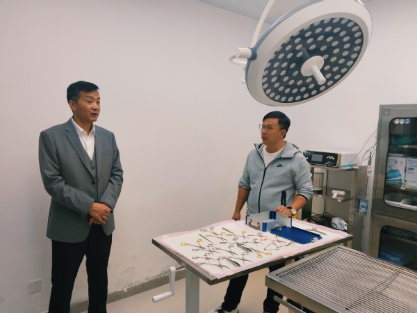 作为创意系联系领导,费国强对创意系的内涵建设、协同育人、校企合作、访企拓岗等工作极为关心。创意系作为融合型专业体,未来在产学研方向、社会需求上,发展空间大,前景向好。带着本次调研的第二个目的,学院一行参观调研了园区内著名民企上海艾娃之树宠物诊疗有限公司,该公司集宠物医疗、美容、运动、中医芳疗理疗、营养保健、临终关怀、行为纠正、亲子互动、流浪动物领养为一体的新型宠物之家。费国强仔细询问了关于企业运营和用人方面的需求,仔细研究了该公司的先进设施设备。公司总经理贾剑表示,公司与学院有过一些合作,希望今后在校企合作、优势互补,专兼教学、科技研发、资源共享等方面能够进一步加强深入合作。