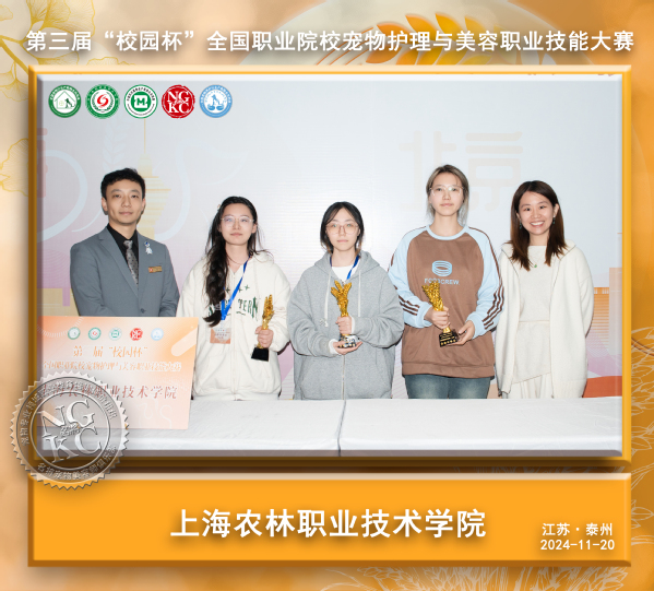 11月20日,全国职业院校宠物护理与美容职业技能大赛第三届“校园杯”,宠物232班周家怡、刘易萌和曹俊三位同学代表参加大赛。本次大赛吸引了来自全国各地的42所职业院校共269名学生积极参与,经过激烈角逐,我院参赛选手凭借扎实的专业技能和出色的表现,荣获高职快速美容组一等奖1项、高职专业组二等奖1项、高职创意组二等奖1项。