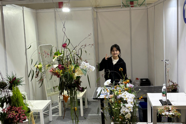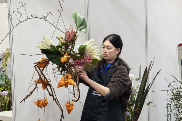 “花艺”项目采用个人赛形式,我院派出5名同学参赛,与来自全市的15名选手围绕花艺构图、色彩理论、设计理念和技艺等方面,通过花束、植物设计、切花装饰、新娘花饰、神秘箱5个模块,展开激烈角逐。参赛选手们需根据主题、环境、容器以及流行趋势等相关要素,进行设计制作花艺作品;需熟悉各种植物材料,合理选择运用植物以及植物(花、叶、果、枝等)器官和装饰材料,熟练运用花艺工具以及相关介质、辅材等,对植物进行再加工和养护,注重作品的创新性和应用性。