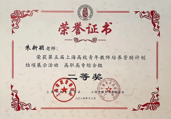自入选2022年“上海高校青年教师培养资助计划”以来,朱新颖积极参与培训与实践,不断提升教学能力。此次获奖不仅是其个人教学成果的有力见证,更为学院教师树立榜样,激励更多教师积极投身课程思政教学改革,深入挖掘专业课程育人价值,为培养德才兼备的高素质技术技能人才贡献力量。