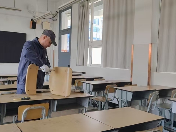 物业团队秉承“跨前一步、主动作为”的服务理念,对校园设施设备开展预防性检查与修缮,完成学生公寓床铺护栏维修、门锁维修、生活水泵检修、生活水箱清洗、燃气锅炉检修、配电箱检修以及教学楼课桌椅检修等工作,保障校园正常供电、供水、供热以及宿舍和教室设施设备完好,及时消除安全隐患,为师生营造安全舒适的学习生活环境。