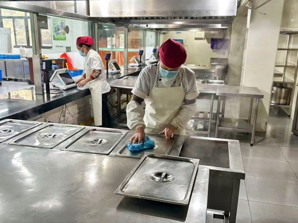餐饮团队全员持有效健康证上岗并完成岗前食品安全培训,同步对水电燃气系统、厨房设备开展专项检测,深度清洁操作区及排水系统,确保设施设备稳定运行。重点盘查库存原材料,建立临期食材预警机制,强化进货核验流程,筑牢校园食品安全防线。