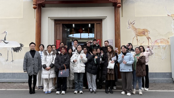 2月25日,即将赴法交流学习的“法国亚眠高等商学院数字经济管理类专业学分互认课程班”的同学们,与来自法国亚眠高等商学院的同学们齐聚余天成上海云间粮仓文创园店,共同参与了一场别开生面的中医药文化体验活动。活动以“八段锦养生功法”和“手工香囊制作”为主题,旨在通过沉浸式互动,增进中法师生对中国传统文化的理解与交流。