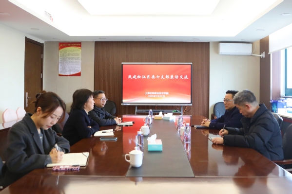 2月27日,民建松江区委七支部主委倪斌、委员胡敏君一行莅临我院开展座谈交流,学院党委副书记、纪委书记陈谊,副院长、副校长张江出席,党委统战部副部长司维以及相关工作人员参加。