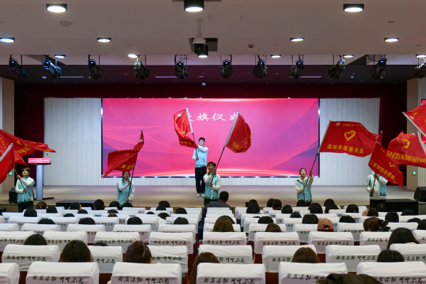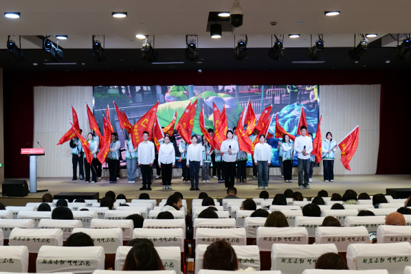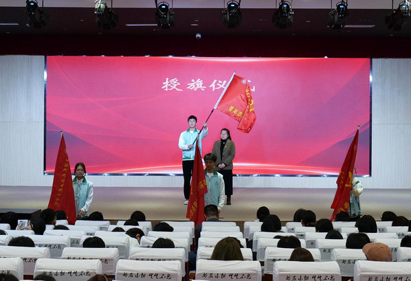 学工部部长高东菊为学院青年志愿者协会和22支志愿服务队授旗,飘扬的旗帜象征着责任与使命的传递,也标志着志愿服务工作开启新征程。
