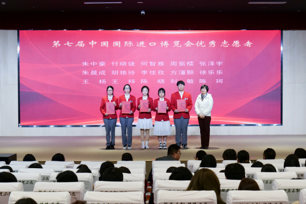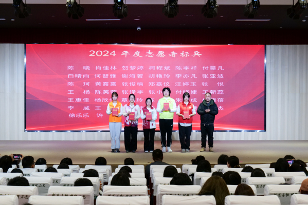 学工部副部长张莎莎宣读表彰决定。授予陈晓等40人2024年度志愿者“标兵”称号,授予柯程斌等141人2024年度志愿者“先进个人”称号,授予朱中豪等15人第七届中国国际进口博览会“优秀志愿者”称号,授予上农轨道交通志愿者服务队等6个志愿服务团队2024 年度“志愿服务先进集体”称号,授予阳光之家志愿服务项目等5个志愿服务项目2024年度“优秀志愿服务项目”称号,授予崔鹏展等7人2024年度“志愿服务优秀指导教师”称号。各系学生工作负责人为获奖师生颁奖。