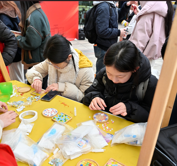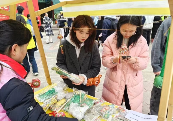 数字经济与创意系精心策划的“传承雷锋精神,共筑绿色梦想”摊位吸引了众多师生。摊位设置塑料瓶、旧书籍等可回收物兑换香囊包,以及志愿者凭100小时服务时长兑换艾草锤的活动。香囊包含艾草等香料,有驱虫醒脑的功效;艾草锤由天然材料制成,实用环保。现场气氛热烈,连来自法国亚眠商学院的学生们也被深深吸引,纷纷驻足体验。