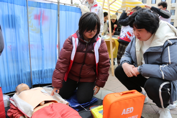 院红十字会推出“关爱生命‘救’在身边”活动,志愿者们通过生动地讲解和标准地示范,让同学们直观地了解急救知识的重要性和操作要点。同学们积极参与互动,在模拟场景中亲身体验急救操作,帮助同学们掌握急救知识。