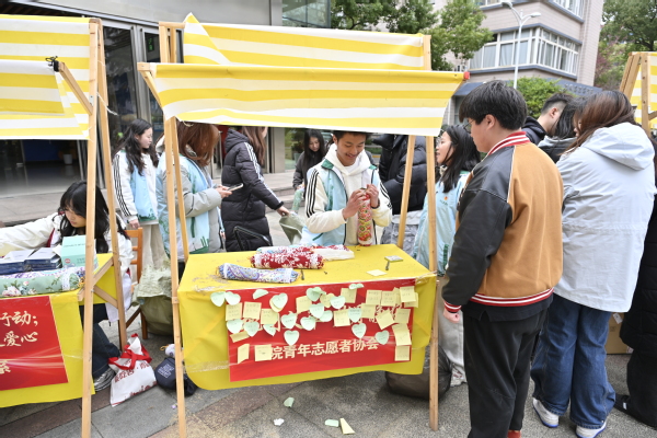 易班发展中心围绕“爱心义卖 情暖人间”主题,设置了琳琅满目的摊位,从书籍文具到精美手工艺品,从闲置好物到特色文创,每一件商品都承载着同学们的爱心。前来选购的师生络绎不绝,为公益事业贡献自己的一份力量。义卖活动结束后,筹集的善款315元捐献至松江红十字会,用于帮助那些需要帮助的人。