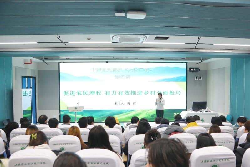 3月18日下午,在综合楼303教室,党委副书记、纪委书记陈谊讲授本年度“中国系列”课程《大国三农》第四讲“农民增收与扶贫”。