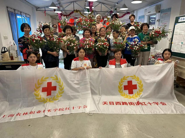 红十字会志愿队每月按时前往静安区天目西路街道开展“行愿无尽·情暖夕阳”爱老志愿服务。面向老人对花艺技术的相关知识和养护技巧进行讲解、指导。根据社区需求进行蔬菜种植养护技巧讲解,插花技术美化生活,蔬菜养护培育身心,给予老人心灵慰藉,充实日常生活,同时增进青年人对老人的关心爱护之心。