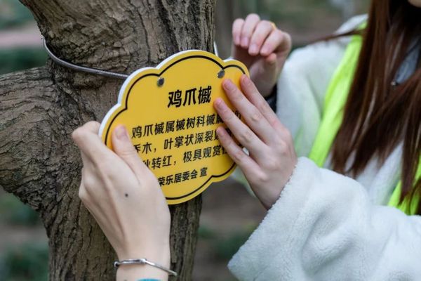 师生们走进社区,与荣乐幼儿园小朋友“大手牵小手”,亲切互动,生动有趣地传授树木知识,涵盖基本结构与生态作用等,让小朋友对树木有深刻认识,播下爱护自然的种子。同时,师生为小区树木美化挂牌,精心制作的树牌标注详细信息并附上有趣小知识。同学们分工合作,核对信息后挂牌,向居民讲解树木特点与价值,居民兴趣浓,现场互动热烈。既为社区居民带来帮助,让其深入了解植物知识,又为学生提供了实践机会,使他们学以致用,增强社会责任感与专业素养。