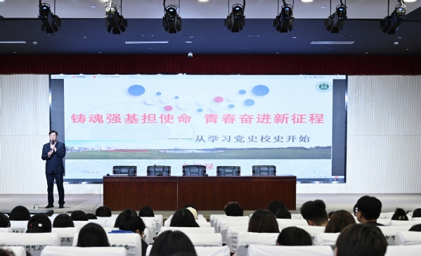 关工委常务副主任俞锦禄带领同学们系统回顾了中国共产党百年奋斗历程,并重点结合校史,讲述了学校自1947年建校以来,始终与党和国家发展同频共振,秉持“尚农乐耕 生生不息”的校训精神,培养了三万余名知农爱农人才。特别是近年来围绕乡村振兴战略,在智慧农业、生态环保等领域形成特色优势,彰显了农业类高职院校的使命担当。希望新时代团学骨干厚植家国情怀,将党史校史学习转化为服务“三农”的实际行动,在乡村振兴的青春赛道上跑出当代青年的最好成绩。