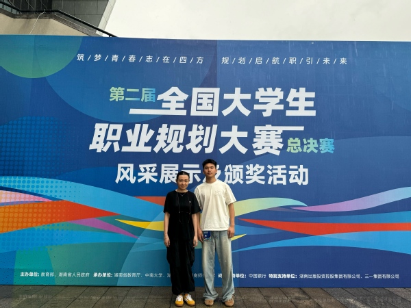 4月16日至19日,第二届全国大学生职业规划大赛全国总决赛在湖南省长沙举行。此次大赛分为校赛、省赛、全国总决赛三个层级,同时针对中低年级学生设立成长赛道,高年级学生设立就业赛道。大赛规模庞大,累计报名学生达1507万人,覆盖高校2763所,经过层层选拔,最终有750余名大学生成功晋级全国总决赛。在激烈的赛事中,我院张阿龙同学脱颖而出,在全国总决赛就业赛道荣获铜奖,这一成绩是他个人努力以及我院重视学生职业规划教育、积极引导学生参与大赛的体现。