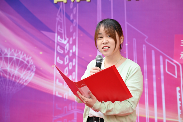 社区辅导员代表齐雪飞,通过“参与、共建、成长”三个关键词,呼吁同学们要踊跃成为社区活动的策划者、参与者与传播者,在各类活动中锤炼高尚品德,在互动交流中增进深厚友谊,在展示自我中绽放青春风采。