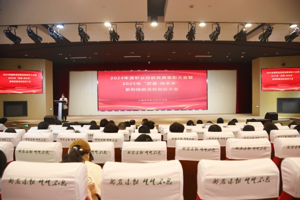 4月23日,在综合楼205报告厅,学院召开2024年度职业技能竞赛表彰大会暨2025年“匠星•向未来”系列技能活动启动大会,副院长张江出席,教务处、教学部门负责人、获奖师生和师生代表200余人参加会议,会议由教务处副处长薛俊梅主持。