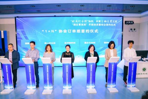 由上海临港新片区生命蓝湾产教联合体、上海生物医药产业学院主办,上海农林职业技术学院和上海医药行业协会承办的“政园行企校”协同,共育生物医药工匠“园区菁英班”开班动员暨校企签约仪式于日前举行,企业代表、教师代表、“园区菁英班”全体学员等一同参会。