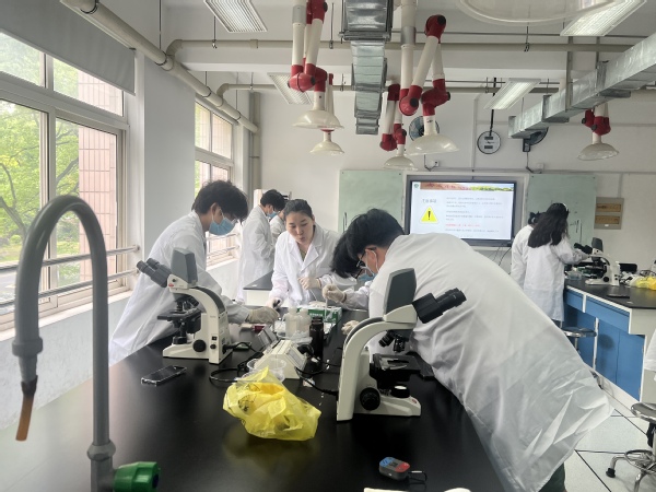 生药系赵乐乐老师主讲《动物解剖生理》,她通过多媒体资源讲解了血涂片制备的原理、目的和意义,帮助同学们理解了姬姆萨染液染色下不同血细胞的形态特征,加深了同学们对血涂片检测意义的理解;同时,通过现场示范的方式演示了血涂片制备的过程、显微镜的观察等,强调了实验注意事项和实验室安全守则,让同学们能掌握操作规范。
