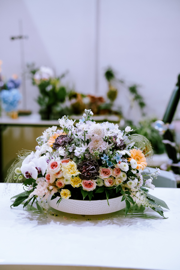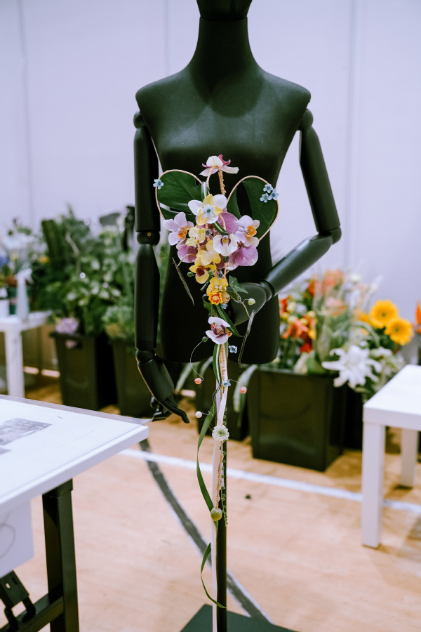 尽管赛项难度显著提升,参赛选手依然展现出扎实的专业功底与默契的团队配合,70件兼具艺术性与功能性的花艺作品精彩亮相,留下十余场充满创意的展示讲解。参赛作品不仅体现了现代花艺的创新理念,更融入了传统文化的传承思考,成为职业教育与产业需求深度对接的生动诠释。
