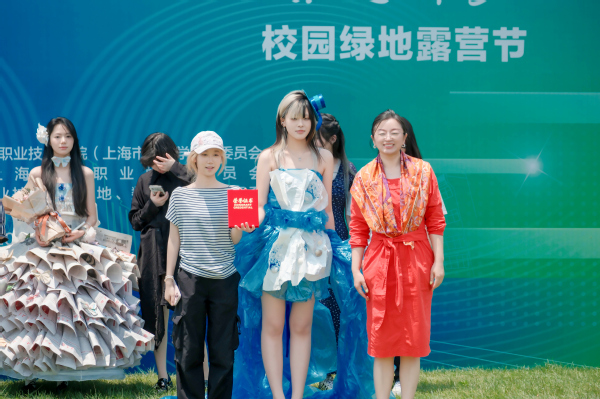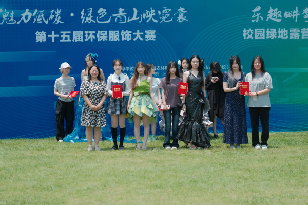 大赛以“创意低碳・绿水青山映霓裳”为主题,15支参赛队伍发挥想象力,将环保理念与时尚设计相结合。选手们利用废旧报纸、垃圾袋、废卡纸、废布料等回收材料,制作出兼具创新、实用与艺术价值的环保服饰。经激烈角逐,文创232班高厦南和周佳琪的作品《灰境绮梦》获一等奖;文创241班汤晓芸的作品《蓝海》和文创242班陆婧菲的作品《彩虹云朵》获二等奖;园林241班姚倩、杨乐乐、朱丽璇的作品《暗夜精灵》,生物241班陆佳琰和融媒体241班杨静的作品《暗紫》,质检231班吴紫萱和钟桂珍作品《森灵》获三等奖。