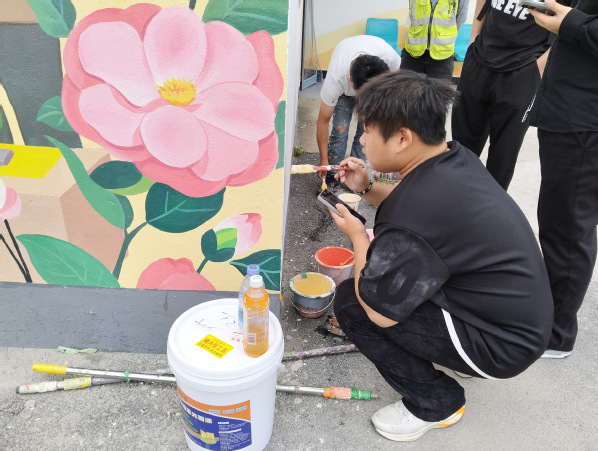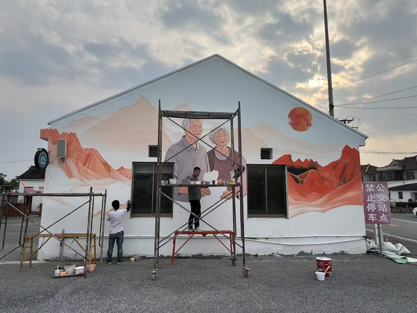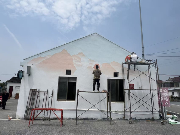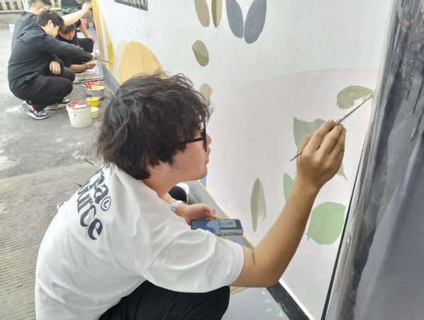 今年4月至5月,创意系风景专业负责人张婷带领风景园林创新中心工作室成员,持续为青浦区王港村提供墙绘设计服务。本次设计在延续2024年项目的基础上,将红色党建与养老主题相结合,展现乡村红色文创和康养文化结合的设计主题。