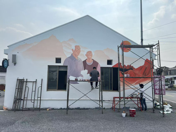 本次墙绘打造区域为王港村老年活动中心和主干道民居部分的墙体,其中老年活动中心涉及6面主要墙体,这些墙体原有部分墙绘内容因年久失修已显陈旧,亟需更新。