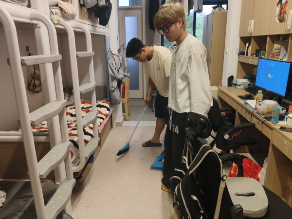 着力构建“寝室-班级-校园”三级劳动场域,将习近平总书记“教育与生产劳动相结合”的理念深度融入育人全过程。5月中旬,各系学工负责人、专兼职辅导员及班主任走进学生社区,化身“劳动导师”,细致为同学们布置任务并亲身示范操作。楼层长、寝室长充分发挥组织协调能力,带领大家讨论高效打扫策略,分享清洁小妙招。在寝室,扫帚声、拖地声与同学们的欢声笑语交织,原本烦琐的劳动变得有序且充满乐趣,同学们在实践中深刻领悟到“把简单做到极致就是不简单”的工匠精神。经过辛勤劳动,学生寝室面貌焕然一新,不仅环境整洁,更营造出积极向上的生活氛围。