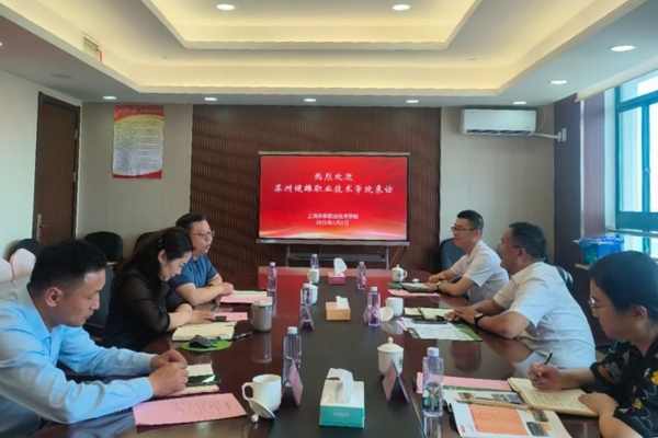 6月5日,苏州健雄职业技术学院党委副书记、校长林长永一行3人来访,院长陈立婧出席,副院长张江主持座谈会。