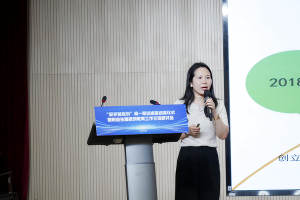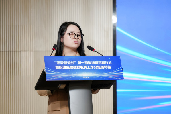 “慧职梦”生涯规划工作室负责人陆琳回顾了工作室“以人影响人”的初心,详细介绍了支撑训练营的“三级课程矩阵”等创新体系设计。她指出,训练营通过精心组织的活动已累计覆盖8000余人次,未来三年工作室将重点升级“1+1+X导师制”和构建“大一启蒙-大二筑基-大三冲刺”的全周期培养闭环。