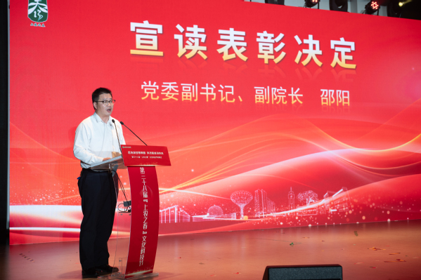 邵阳宣读《中共上海农林职业技术学院(上海市农业学校)委员会关于表彰第三十八届“上农之春”文化科技节先进集体和先进个人的决定》。