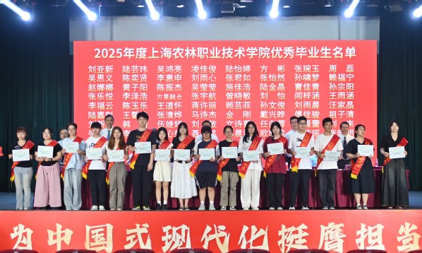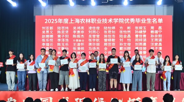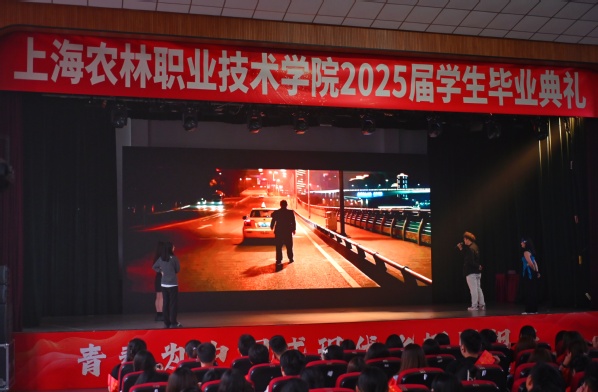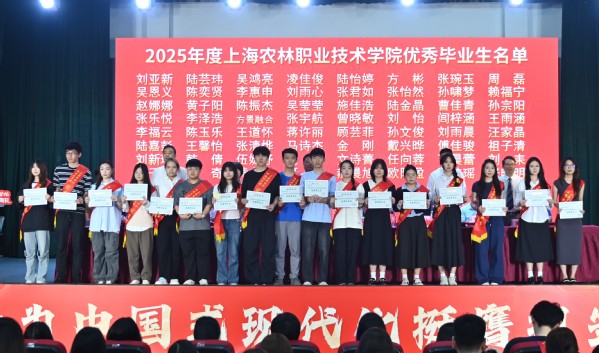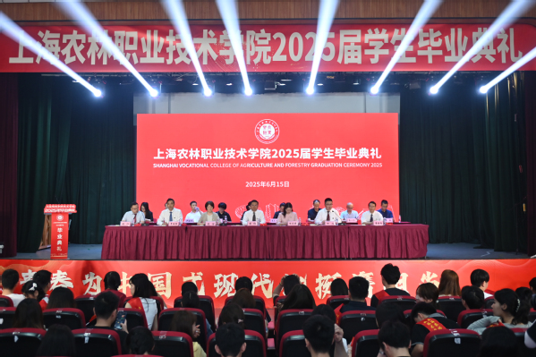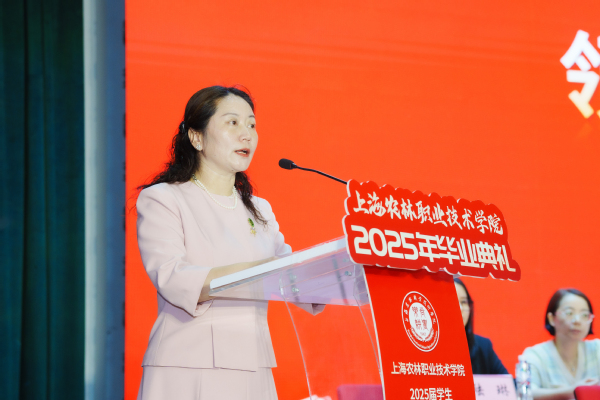 毕业典礼在雄壮嘹亮的国歌声中拉开序幕。院长陈立婧代表全体师生向学有所成、顺利毕业的2025届全体毕业生表示祝贺,为他们的成长与进步感到欣慰。随着技术的发展与科技的创新,人工智能正以前所未有的速度重塑着世界的面貌,希望同学们坚守道德力,做有温度、有担当的社会新人;点燃内驱力,锤炼主动求变、自我超越的品格;永葆求知力,养成终身学习、跨界融合的习惯。党委副书记、纪委书记陈谊宣读《关于授予潘孙焱等49名同学“2025年度上海市普通高等学校优秀毕业生”和刘亚新等65名同学“2025年度上海农林职业技术学院优秀毕业生”荣誉称号的通知》;副院长张江宣读《上海农林职业技术学院关于准予2025届毕业生毕业的决定》;党政领导现场颁发上海市高校优秀毕业生、学院优秀毕业生和学生毕业证书。
