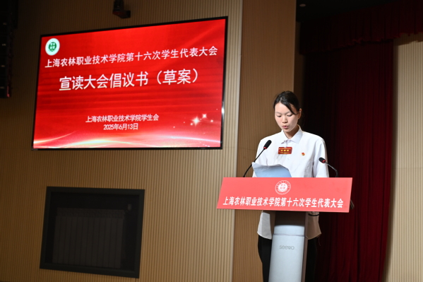 6月13日,上海农林职业技术学院第十六次学生代表大会在综合楼205报告厅举行。党委副书记、副院长邵阳出席,市学联驻会执行主席张世哲受邀参加,兄弟院校学生会代表、学工部、团委、各系团总支以及136名代表参加大会。