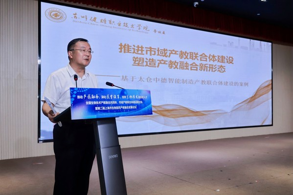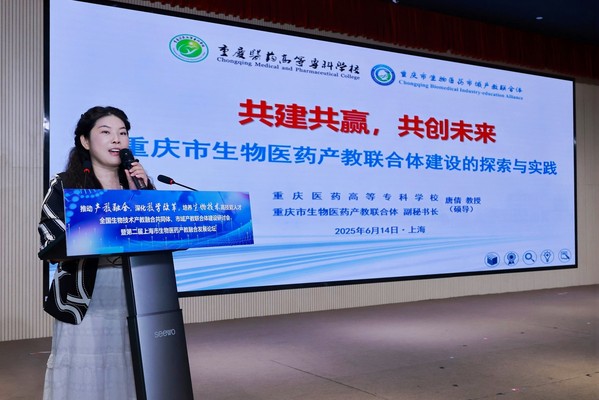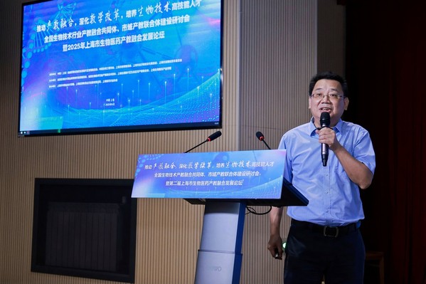 院长陈立婧,中国生物工程学会秘书长、全国生物技术行指委常务副主任兼秘书长张宏翔,工业和信息化部中小企业发展促进中心人力资源所所长嵇峰,上海临港新片区管理委员会发改处副处长庄青松与上海市教育委员会职教处副处长马骏分别致辞。陈立婧提到,学院持续探索产教融合新模式,通过与企业合作培养人才,为生物医药产业发展提供有力支撑;张宏翔表示学会愿整合资源,助力产教融合,推动生物医药领域的技术创新与成果转化;嵇峰指出,应重视中小企业在生物医药产业中的作用,借助产教融合助力其发展;庄青松表示,临港新片区在政策、资源等方面将大力支持生物医药产教融合项目,打造产业发展新高地。马骏强调,市教委将加强政策引导,鼓励各方深度参与,提升生物医药产教融合的质量与成效。