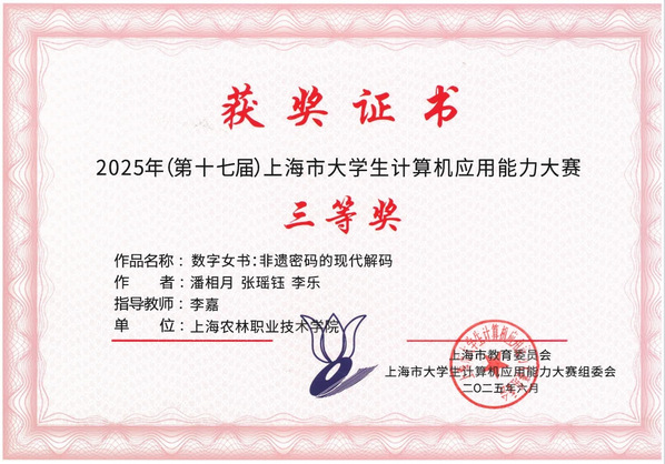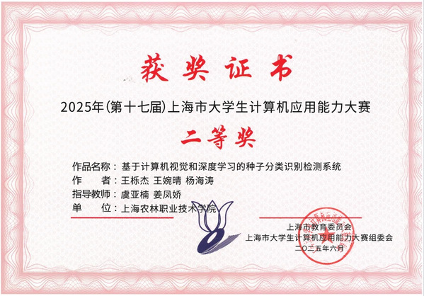 近日,2025年(第十七届)上海市大学生应用能力大赛颁奖典礼在上海师范大学举行。我院智工系学生代表队在人工智能应用、微课与AI辅助教学两个赛项中表现优异,分别荣获二等奖和三等奖,并成功晋级国赛。